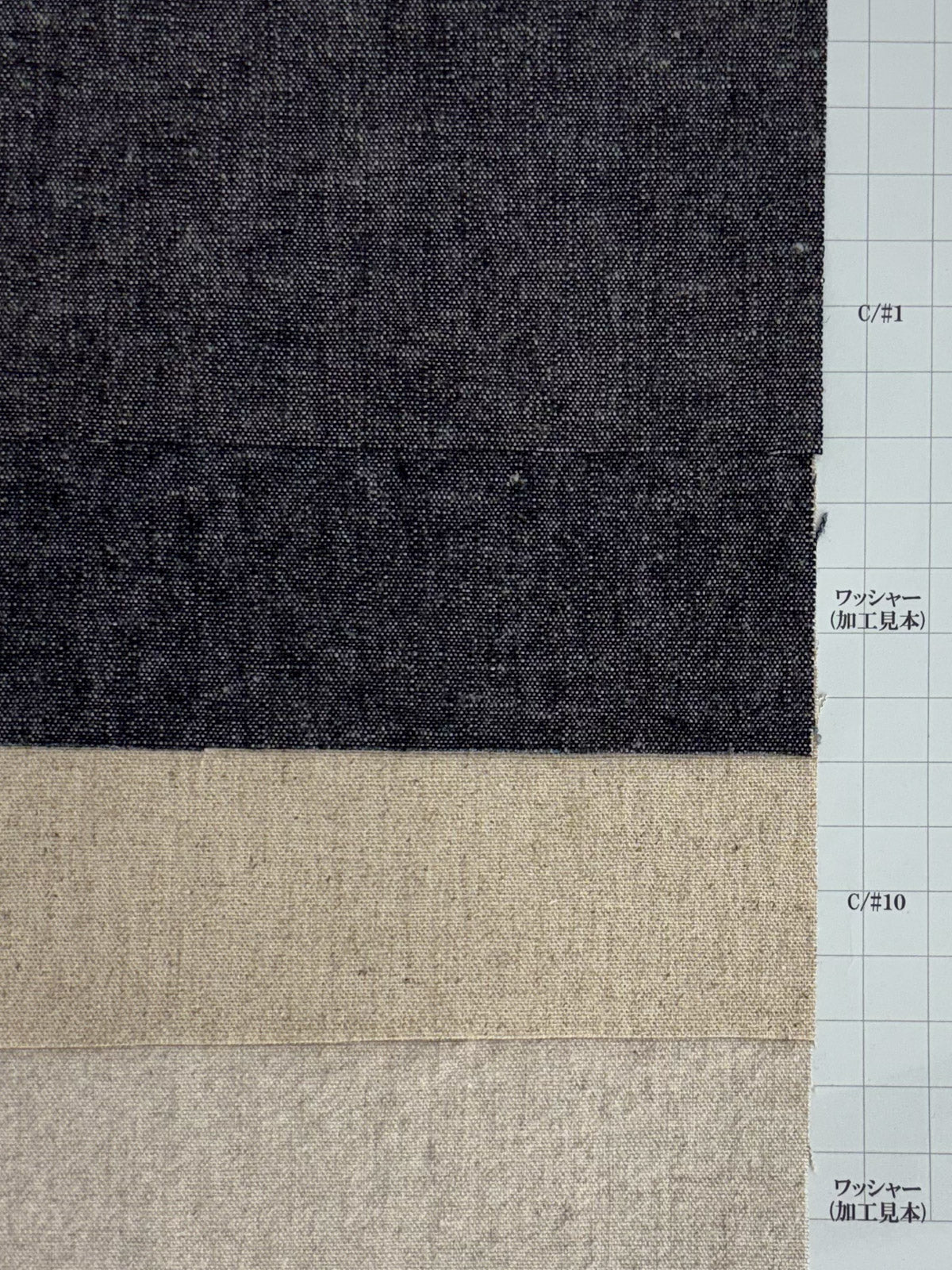 9.0oz linen blended ecru chambray. 10x10 weave, both warp and weft are 60% linen blend, resulting in a natural, dry feel and a raw ecru color.