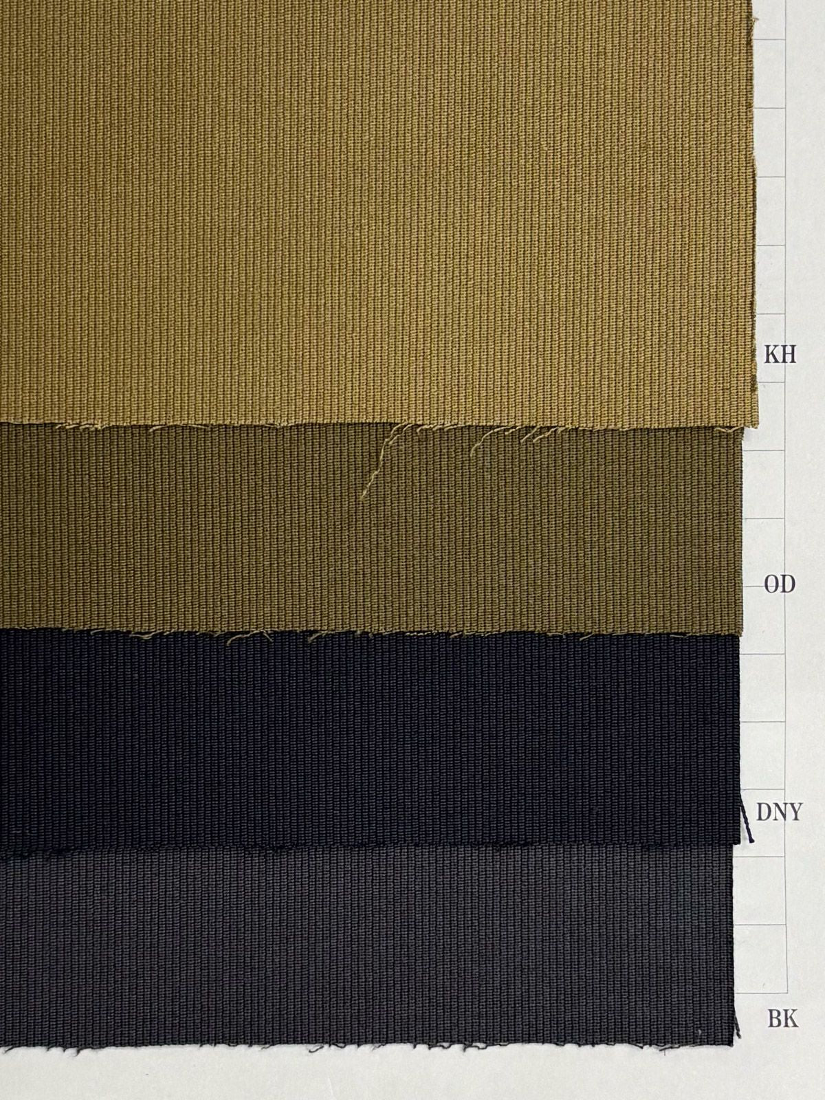 11.6oz cotton cordcloth. 14/2x25 spec using Giza cotton for both warp and weft. High-density weave for a firm texture and subtle sheen.