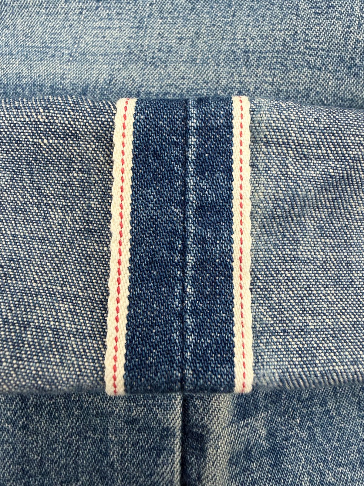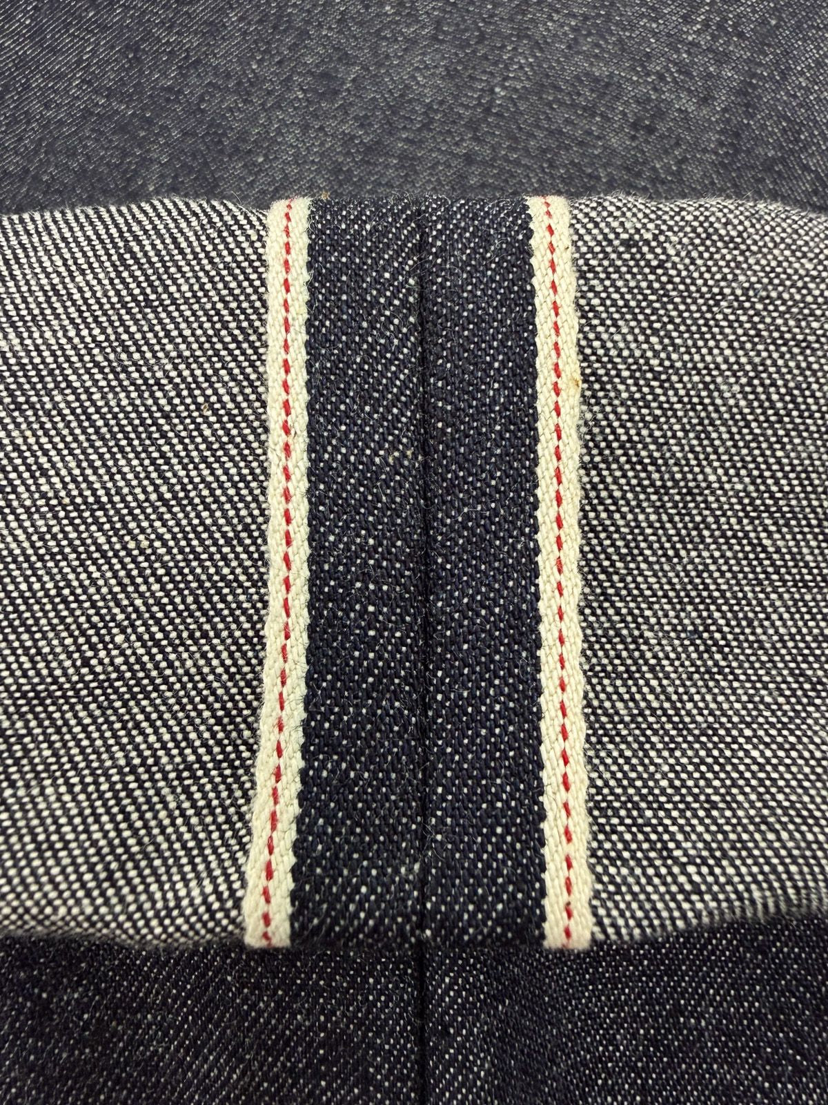 10.0oz 2×1 right-hand twill selvedge denim. Spec 10×10; a versatile weight suitable for both tops and bottoms.