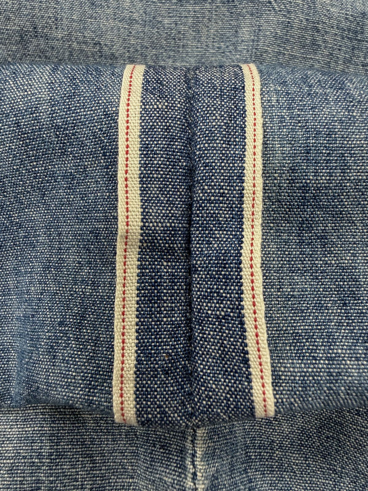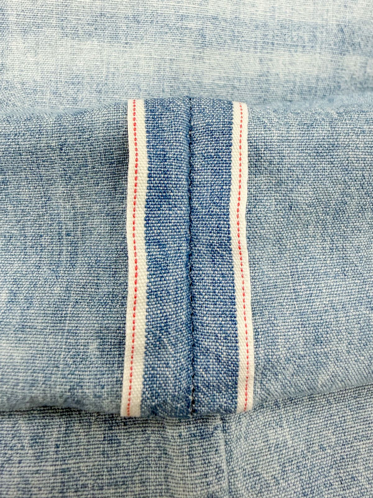 4.7oz shirting-weight chambray selvedge denim. Spec 20×20; woven on shuttle looms for a lofty, rounded hand.