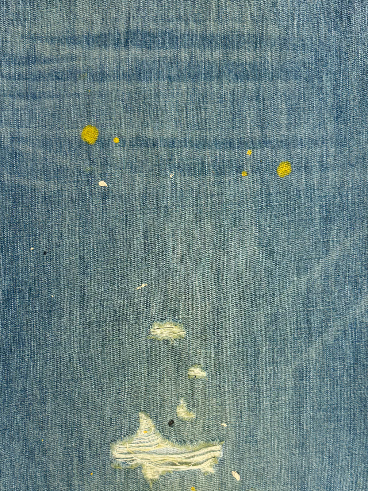 7.5 Oz 2x1 twill shirting weight denim. The fabric specification is 16x16, adopting a light indigo color reminiscent of vintage denim.