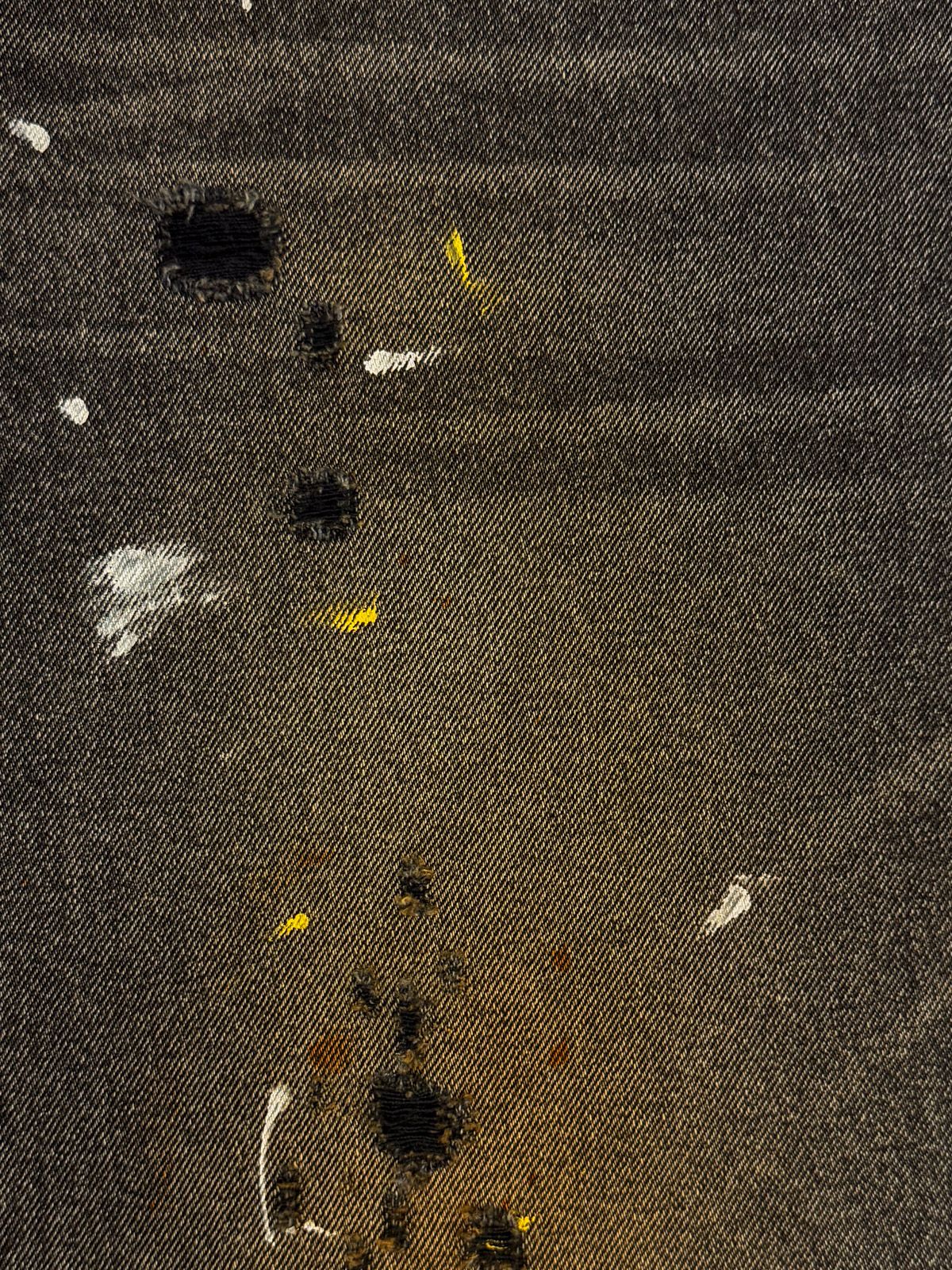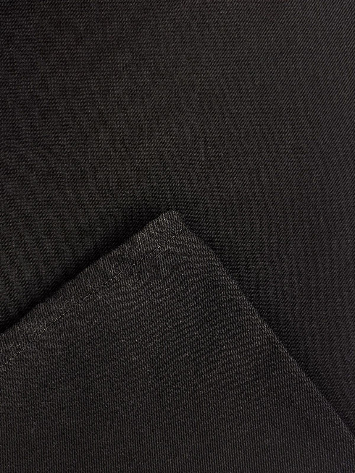 12.5oz vintage-look black-on-black denim fabric. The construction is 7×7, and by rope-dyeing both warp and weft with sulfur dye, it yields a vintage appearance after processing.